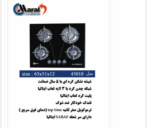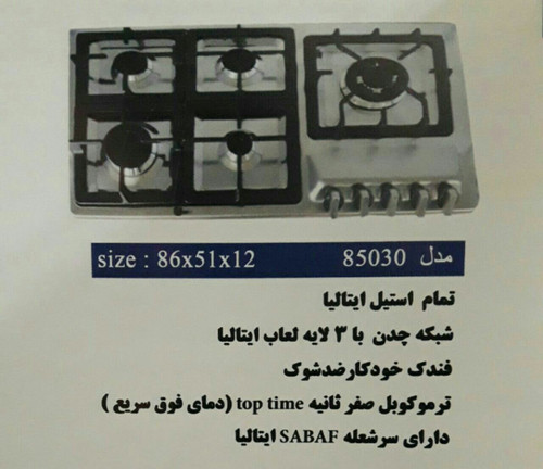 اجاق گاز رومیزی ۵شعله(استیل)مارال استیل مدل۸۵۰۳۰ناموجود