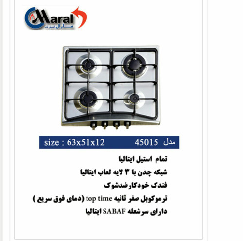 اجاق گاز رومیزی ۴شعله(استیل)مارال استیل مدل۴۵۰۱۵ناموجود