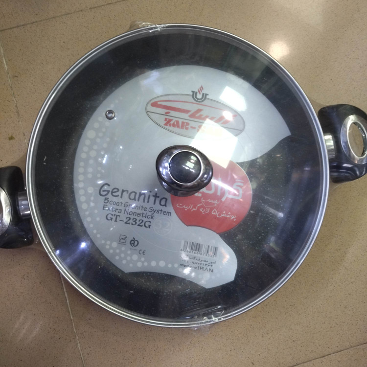مشخصات تابه دودسته سایز 32 گرانیتا زرشکی با درب شیشه ای زرساب کد GT-232G-R