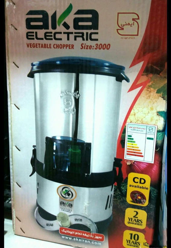 | سایر مشخصات | باز و بستهشدن مخزن جهت شستوشوی آسان, بازشدن آسان تیغه, تیغهی استیل, دارای گواهینامهی ایزو 9001-14001-18001, سرعت چرخش 1400 دور بر دقیقه, عملکرد فشاری, قفل خودکار تیغه بدون نیاز به بستن مهره, مجهز به میکروسوئیچ ایمنی |