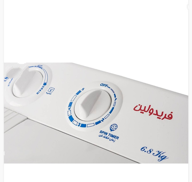با توان 200 وات دستگاهی با طراحی زیبا جهت شستشوی بسیار تمیز انواع لباس ها میشود . بدنه دستگاه از جنس پلاستیکی بوده که دارای دو لایه میباشند و کابین محافظ نیز دارند که سبب دوام بالای لباسشویی میشود . مصرف انرژی این دستگاه بسیار پایین بوده و موجب صرفه جویی در آب و برق میشود . طراحی این لباسشویی به صورت دو قلو بوده که پس از شستشوی لباس میتوان آبکشی و خشک کردن را نیز انجام داد . لباسشویی swt68 با ظرفیت 5 کیلوگرم برای شستشو مناسب برای خانواده های کم جمعیت تا متوسط طراحی شده است . لباسشویی دو قلو 68 فریدولین دارای پنل با 3 ولوم چرخشی است که شامل تایمر شستشوی 15 دقیقه ای جهت شستشو ، تایمر 5 دقیقه ای برای خشک کن و تنظیم نوع عملکرد در 3 وضعیت شستشوی معمولی ، قوی و حالت آبکشی میباشد . ظرفیت محفظه خشک کن دستگاه 2 کیلوگرم میباشد . پس از اتمام شستشو تنها کافیست لباس ها را درون سبد خشک کن قرار دهید و شلنگ آب را به ورودی خشک کن متصل نمایید تا براحتی آبکشی شوند. درب دستگاه به صورت مگنتی بوده که هنگام بسته شدن کاملا با دهانه لباسشویی منطبق میشود . لباسشویی فریدولین دارای دو ورودی آب بوده که یکی درون لباسشویی و دیگری درون خشک کن قرار میگیرد. شلنگ خروجی هنگام شستشو باید بالا و هنگام آبکشی باید پایین و روی سطح صاف قرار بگیرد.