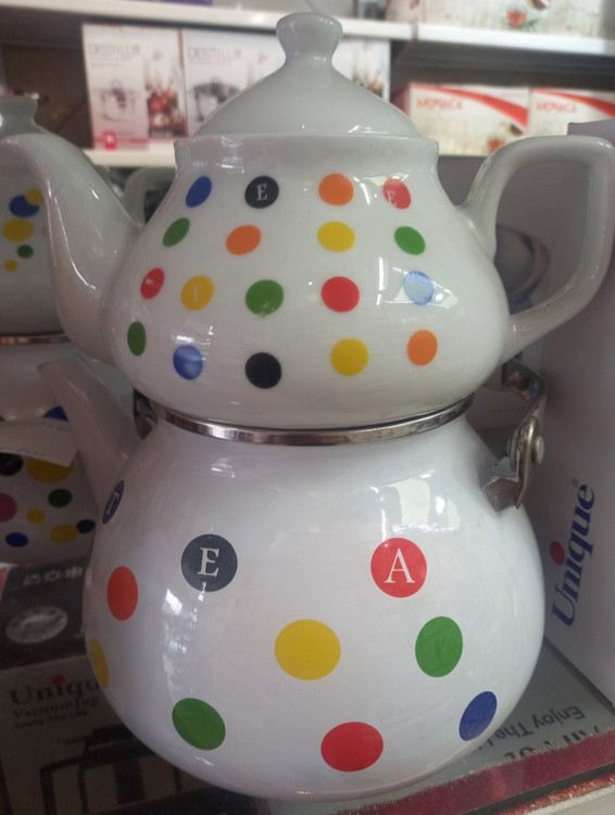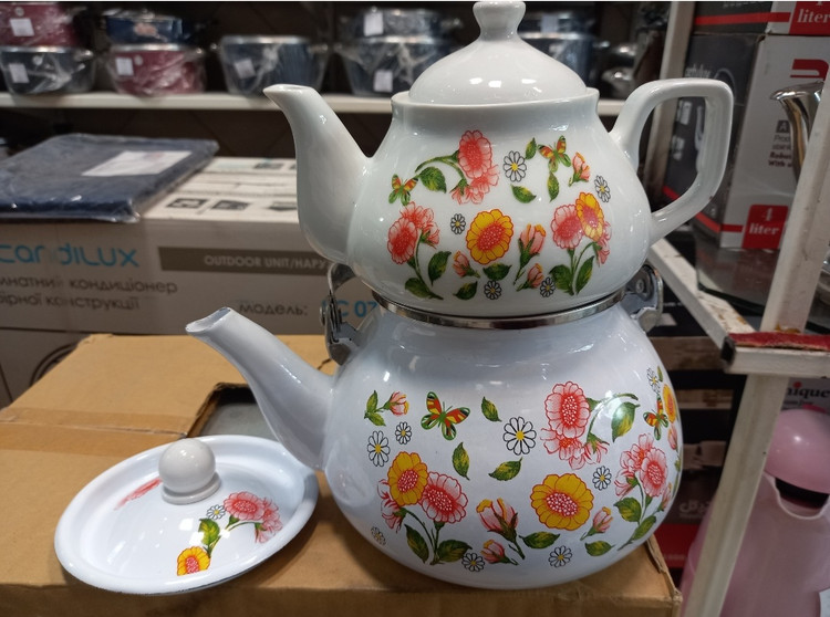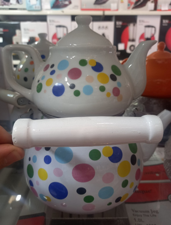 کتری وقوری لعاب با دسته سرامیکی گلدار