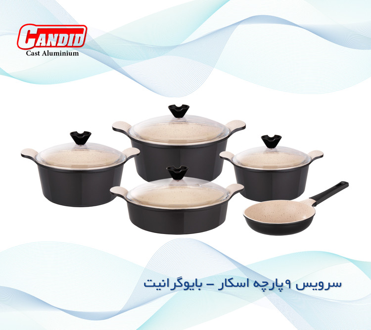 | سایر مشخصات | تابه تکدسته سایز ۲۰ بدون درب ( ارتفاع: ۵ سانتیمتر | وزن: ۵۱۰ گرم ) تابه دودسته سایز ۲۸ ( ارتفاع ۷.۵ سانتیمتر | وزن: ۱۸۶۵ گرم ) قابلمه سایز ۲۰ ( ۴ نفره | وزن: ۱۱۳۵ گرم ) قابلمه سایز ۲۴ ( ۶ نفره | وزن: ۱۵۴۵ گرم ) قابلمه سایز ۲۸ ( ۸ نفره | وزن: ۲۱۶۵ گرم ) |