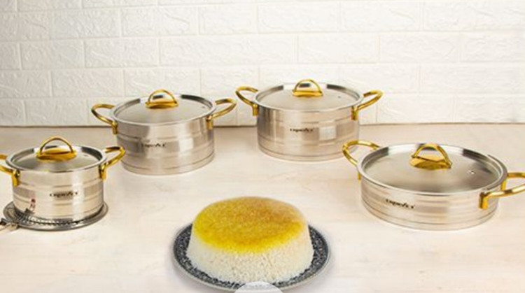 سرویس قابلمه: استیل با دستگیره طلایی ۸پارچه