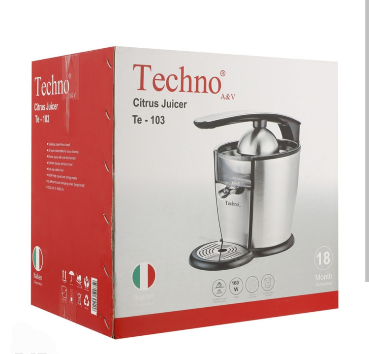 یکی از وسایل پرکاربرد در هر خانه برای آب گیری از انواع مرکبات نظیر پرتغال ، لیمو شیرین و نارنگی ، دستگاه های آبمرکبات گیری می باشد. این محصولات در دسته برقی به دو گروه اهرمی و فشاری تقسیم می شوند. شرکت تکنو در ادامه معرفی محصول جدید خود در این دسته ، آب مرکبات گیری مدل Te-103 را معرفی کرده است که در ادامه به معرفی این محصول می پردازیم .