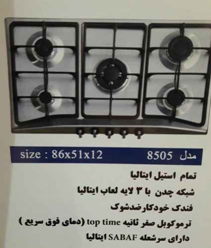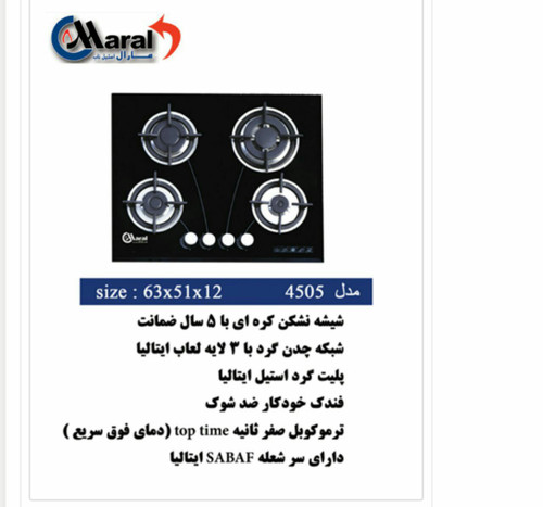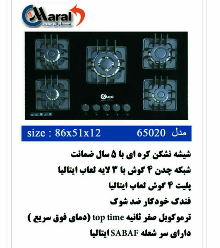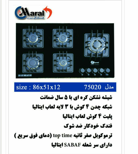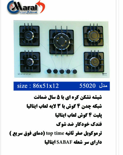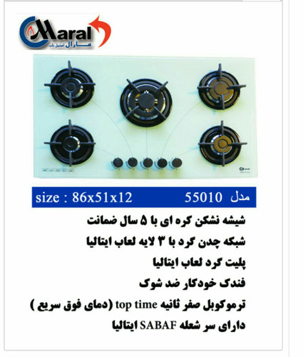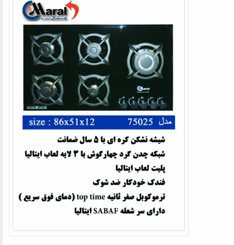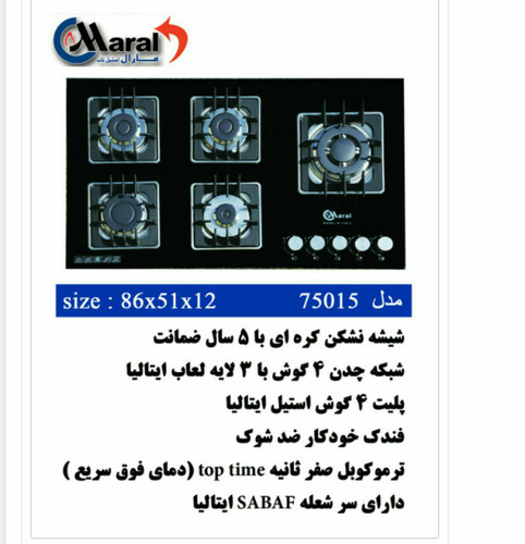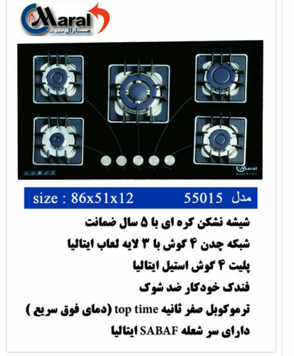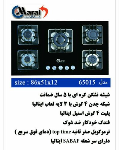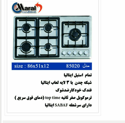 اجاق گاز رومیزی ۵شعله(استیل)مارال استیل مدل۸۵۰۲۰ناموجود