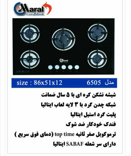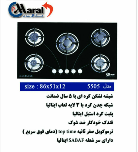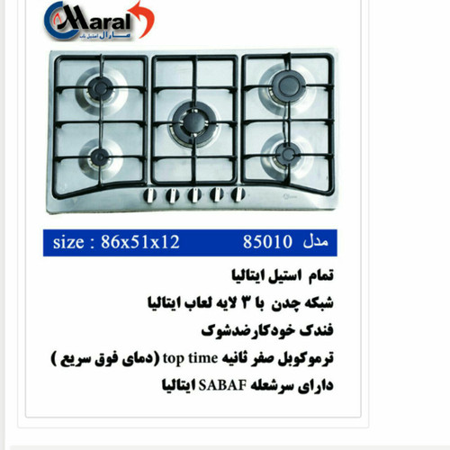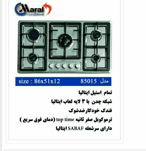 اجاق گاز رومیزی ۵شعله(استیل)مارال استیل مدل۸۵۰۳۰ناموجود